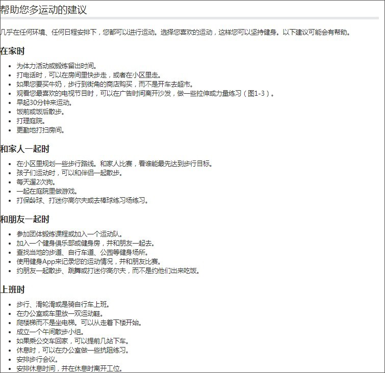 1. 生命在于运动,要想拥有健康的身体,体育锻炼必不可少。而如今要想在忙碌的生活中安排出专属时间来运动,实际上是很奢侈的事情。所以,如何让运动融入到生活之中,就变得至关重要!对此,您可以试一试这些建议: