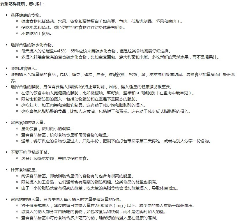 2.为了健康,除了锻炼之外,我们还必须改变不正确的饮食习惯,在“吃”字上下功夫。那么怎样吃才能吃出健康呢?遵循这些原则大有帮助: