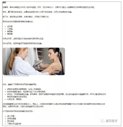 阅读容易,但真正为健康作出改变却很难。好在,梅奥医疗集团的专家在文章创作的初始就考虑到了这一点,所以每篇文章都遵循可实现性、可操作性的原则。惠每患者教育中心展现的中文翻译稿,也经过了惠每医学团队的严格审校,并且通过了梅奥官方的检查和评估,获得良好赞誉。