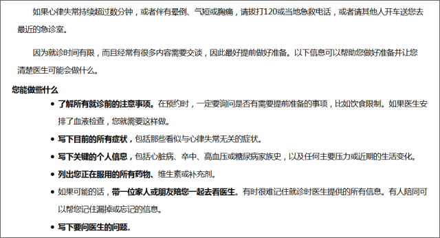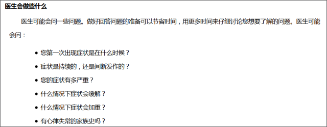 Mayo Clinic 的患者教育资料也为患者提供了就诊时的提问清单,而且Mayo Clinic 根据疾病的特点细化了提问清单,同时还为患者提供了贴心的就诊准备,告诉患者就诊之前应该做些什么。