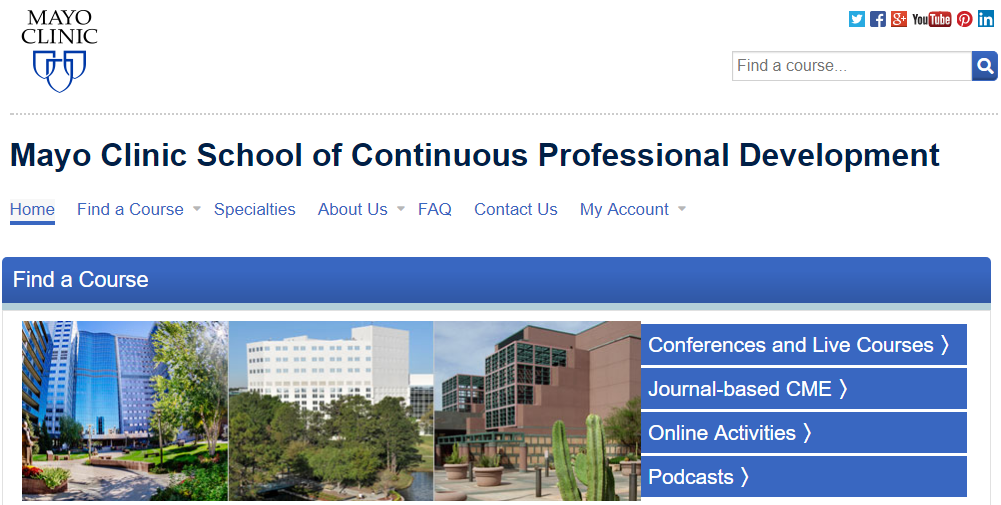 医生继续教育体系(CME)是 妙佑医疗国际(Mayo Clinic) 的医生继育教育内容,包括应用于全科医生的文献、临床指南等,应用于专科医生的专业视频课程,大查房记录等。研讨会及短期课程对全科医生和专科医生均可以开放。